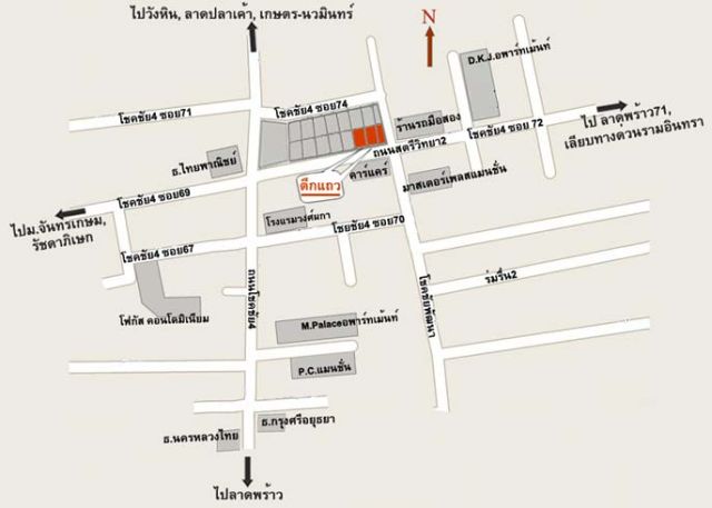 ขายตึกแถว 2 ห้องหัวมุม 4.5 ชั้น เนื้อที่ทั้งหมด 57 ตรว. * มีพื้นที่เปล่าด้านข้าง * (จอดรถได้) อยู่ปากซ.โชคชัย 4 แยก 72 (ซ.สตรีวิทยา2) น้ำไม่ท่วม