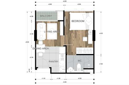 ขนาดห้อง : 27 ตร.ม. 1 ห้องนอน 1 ห้องน้ำ