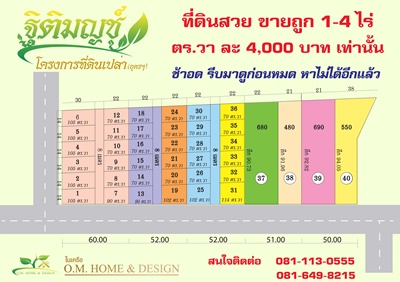โครงการที่ดินเปล่า ฐิติมญชุ์ ขายที่ดินสวยราคาถูก 1-4 ไร่ ตารางวาละ 4000 บาทเท่านั้น ติดถนน น้ำ ไฟฟ้าพร้อม ใก้ลถนน 8 เลน ใก้ลโรงเรียน โรงพยาบาล มหาวิทยาลัย เช็นทรัล UD อุดร สถานนีรถไฟ สนใจติดต่อ คุณศิริศักดิ์ 081-113-0555 ช้าหมดแล้วจะเสียใจ