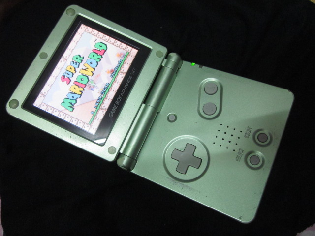 ขาย gameboy advance sp ฝาพับ รุ่น blacklight จอสว่าง2เท่าพร้อมเกมส์ มีสีเขียวอ่อนและมีสีดำราคา 2,000 บาท