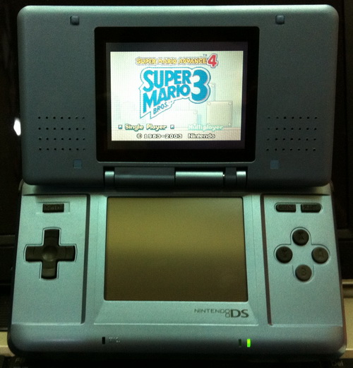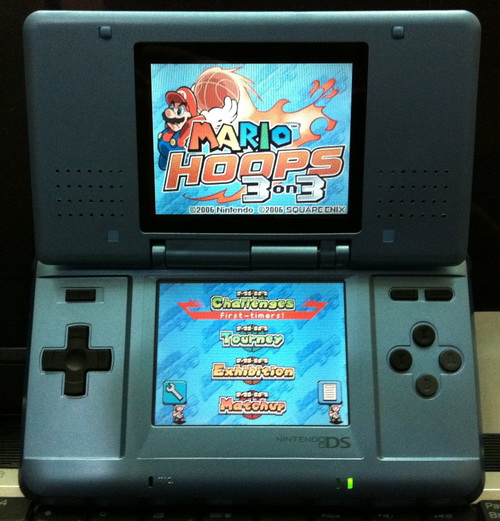 มีช่องเสียบตลับ 2 ช่อง สามารถเล่นตลับ Nintendo DS และตลับ GameBoy Advanced ได้