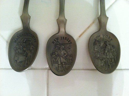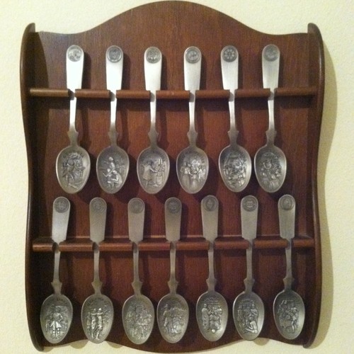 ช้อนโลหะ (ดีบุกผสมตะกั่ว) ของเก่าสลักลาย 13 รัฐในสหรัฐอเมริกาพร้อมที่แขวนโชว์