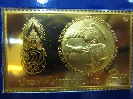 ในมหามงคลวโรกาสที่พระบาทสมเด็จพระเจ้าอยู่หัวภูมิพลอดุลยเดชทรงครองราชสิริราชสมบัติครบ 50 ปี ปวงชนชาวไทยทั่วแผ่นดินต่างสำนึกในพระมหากรุณาธิคุณที่พระองค์ทรงเสียสละเพื่อประโยชน์สุขของไทยทั้งหล้า การสื่อสารแห่งประเทศไทยได้มอบสิทธโดยพระบรมราชานุญาตให้บริษัทฯนำภาพพระบรมสาทิสลักษณ์และพระสาทิสลักษณ์จากตราไปรษณียากรของไทยจำนวน 25 ภาพ เพื่อนำไปจัดทำเหรียญเงินชุบทองคำที่ระลึกในงานฉลองสิริราชสมบัติครบ 50 ปี ขึ้นเพียง 10,000 ชุดในโลกเท่านั้น เป็นงานหัตถศิลป์สลักเสลาอย่างประณีตเก็บรายละเอียดทั้งหมดอย่างพิถีพิภันด้วยช่างฝีมือแห่งประเทศสวิตเซอร์แลนด์ เหรียญเงินชุบทองฯแต่ละเหรียญมีความหนา 2.2 มิลลิเมตร ขนาดเท่าตราไปรษณียากรจริงโดยใน 1 ชุดจะประกอบด้วยเหรียญจำนวน 25 เหรียญ โดยชุดแรกที่ผลิตทำด้วยทองคำสวิส 999.9 เพื่อนำขึ้นทูลเกล้าทูลกระหม่อมถวายแด่พระบาทสมเด็จพระเจ้าอยู่หัวเพื่อเป็นราชสักการะ และอีก 9,999 ชุด ทำด้วยเงินบริสุทธิ์ชุบทองคำสวิส 999.9 ให้ประชาชนทั้งในและต่างประเทศได้มีโอกาสสั่งจองเพื่อเก็บรักษาไว้เป็นที่ระลึกให้ลูกหลานเทิดทูนสืบต่อไป และหลังจากนั้นแม่พิมพ์ต้นแบบพร้อมเหรียญเงินชุบทองฯจำนวน 1 ชุดจะเก็บรักษาและจัดแสดงไว้ ณ พิพิธภัฯฑ์ตราไปรษณียากรของการสื่อสารแห่งประเทศไทย