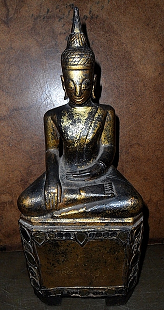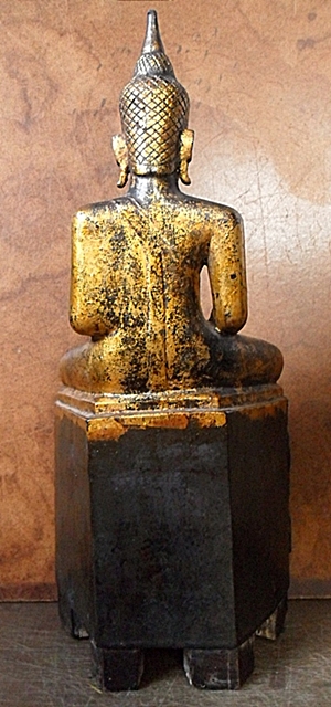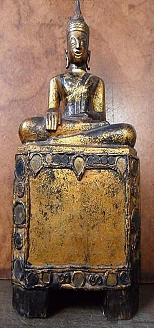 พระไม้แกะสลักสมัยล้านนาโบราณ ลงรักปิดทองเก่ามากมีจารอักขระโบราณเอาไว้ที่ฐานด้านหน้า หน้าตัก 5 นิ้ว สูง 11 นิ้ว สภาพสวยสมบูรณ์มากครับ