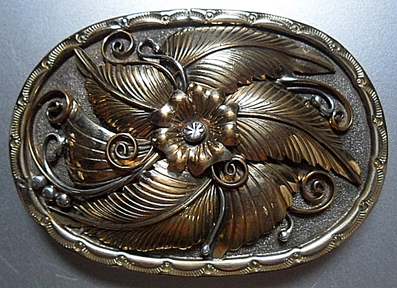 หัวเข็มขัดเงินแท้ ด้านหน้าลงกาไหล่ทอง K ลวดลายสวยงามมากครับ ขนาดประมาณ 3 นิ้ว สวยสมบูรณ์หายากครับ