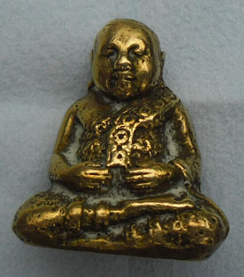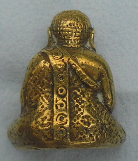 หล่อโบราณ พระสังกัจจายน์ ทรงเครื่องลายดอกพิกุล ยุครัตนะ สมัยอยุธยาตอนปลาย-กรุงรัตนโกสินทร์ตอนต้น ประมาณ ๒๐๐-๓๐๐ ปี ขนาด 1 นิ้ว เนื้อทองผสม พิมพ์ทรงคมชัดลึก สภาพสวยมาก เก่า แท้