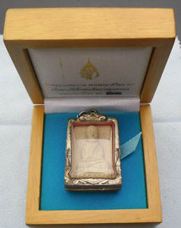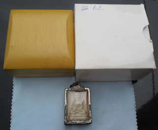 หลวงพ่อทวด สก. พิมพ์ใหญ่สี่เหลี่ยม (พิเศษมากๆ ฝังผงบางขุนพรหม เป็นก้อน) หลัง สก. เนื้อขาวผสมเนื้อบางขุนพรหม รุ่นแรก สร้างปี 2544 วัดห้วยมงคล จ.ประจวบคีรีขันธ์ No.62 และโค๊ดนะสีม่วง สร้างแค่ 100 องค์ พระสวยมาก มีน้อย แท้ หายากมากๆ พร้อมกล่องไม้ และกรอบเงินอย่างสวย