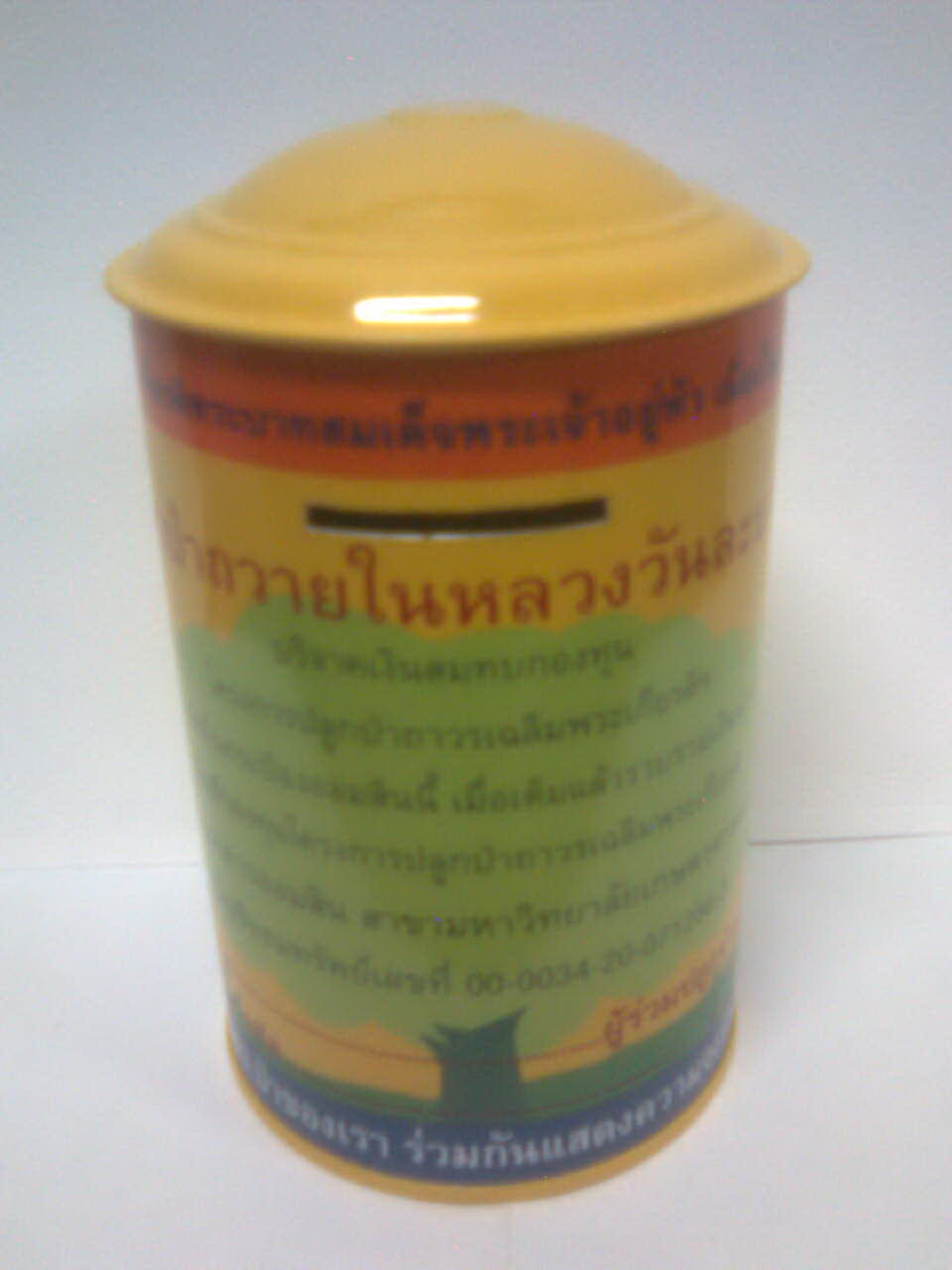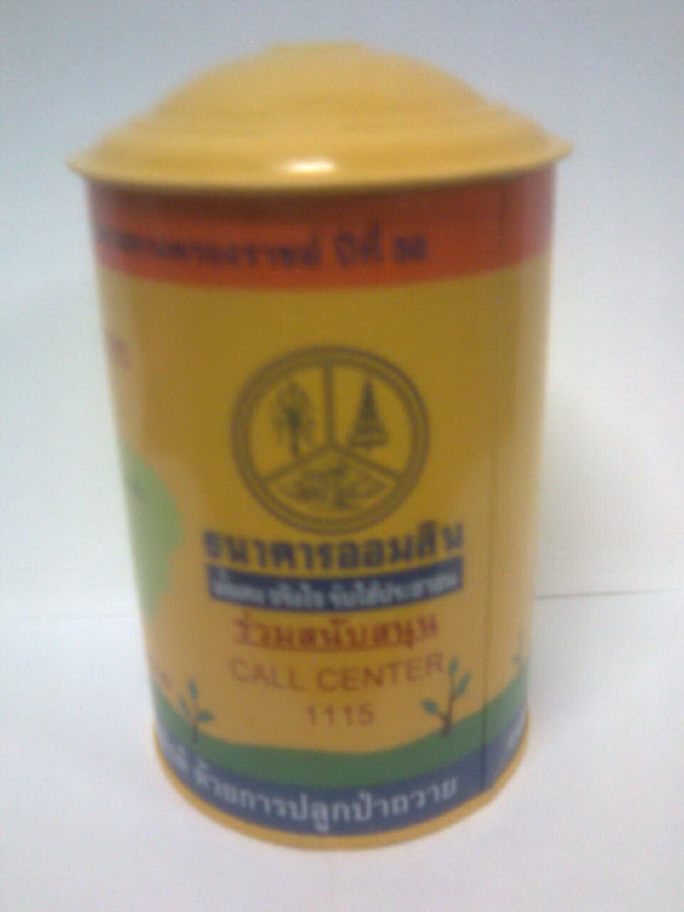 หากใครชอบเก็บสะสมกระปุกออมสินแล้ว หากขาดใบนี้ คงจะต้องรีบหามาเก็บไว้กันนะครับ เป็นกระปุกออมสินที่ทางธนาคารออมสินจัดทำขึ้น เพื่อร่วมสนับสนุน " โครงการปลูกป่าถาวรเฉลิมพระเกีัยรติพระบาทสมเด็จพระเจ้าอยู่หัว เนื่องในวโรกาสทรงครองราชย์ ปีที่ 50 " กับทางกรมอุทยานแห่งชาติ สัตว์ป่าและพันธุ์พืช เป็นกระป๋องใบใหญ่สีเหลือง มีข้อความให้ช่วยกันบริจาคเงินเพื่อสบทบกองทุนปลูกป่าถาวร ไม่มีช่องนำเหรียญออกด้านใต้กระปุก สภาพใหม่สุดๆ ขายให้ผู้ที่รักกระปุกออมสินทุกท่าน ราคา 400 บาท ค่าจัดส่ง 30 บ. มีใบเดียวนะครับ ( กระปุก ชุด 7 สี 390 นะครับ ) ขอบคุณที่สนใจและสั่งซื้อครับ