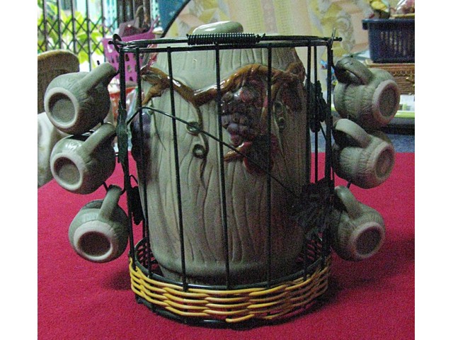 ถังไวน์องุ่น(เก่าเก็บ)พร้อมแก้ว 6 ใบ ถังสูง 7 นิ้ว และแก้วสูง 1.5 นิ้ว งานเซรามิค 900 บาท