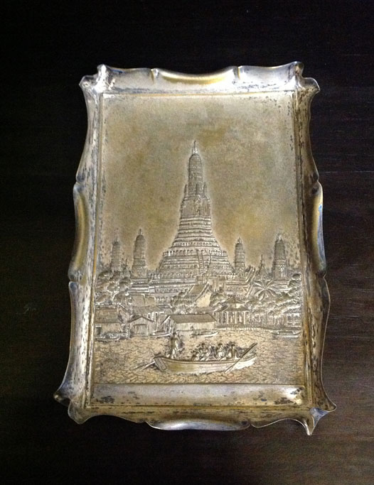 ถาดกะไหล่เงินดุนลายวัดอรุณ ขนาด 5*7 นิ้ว