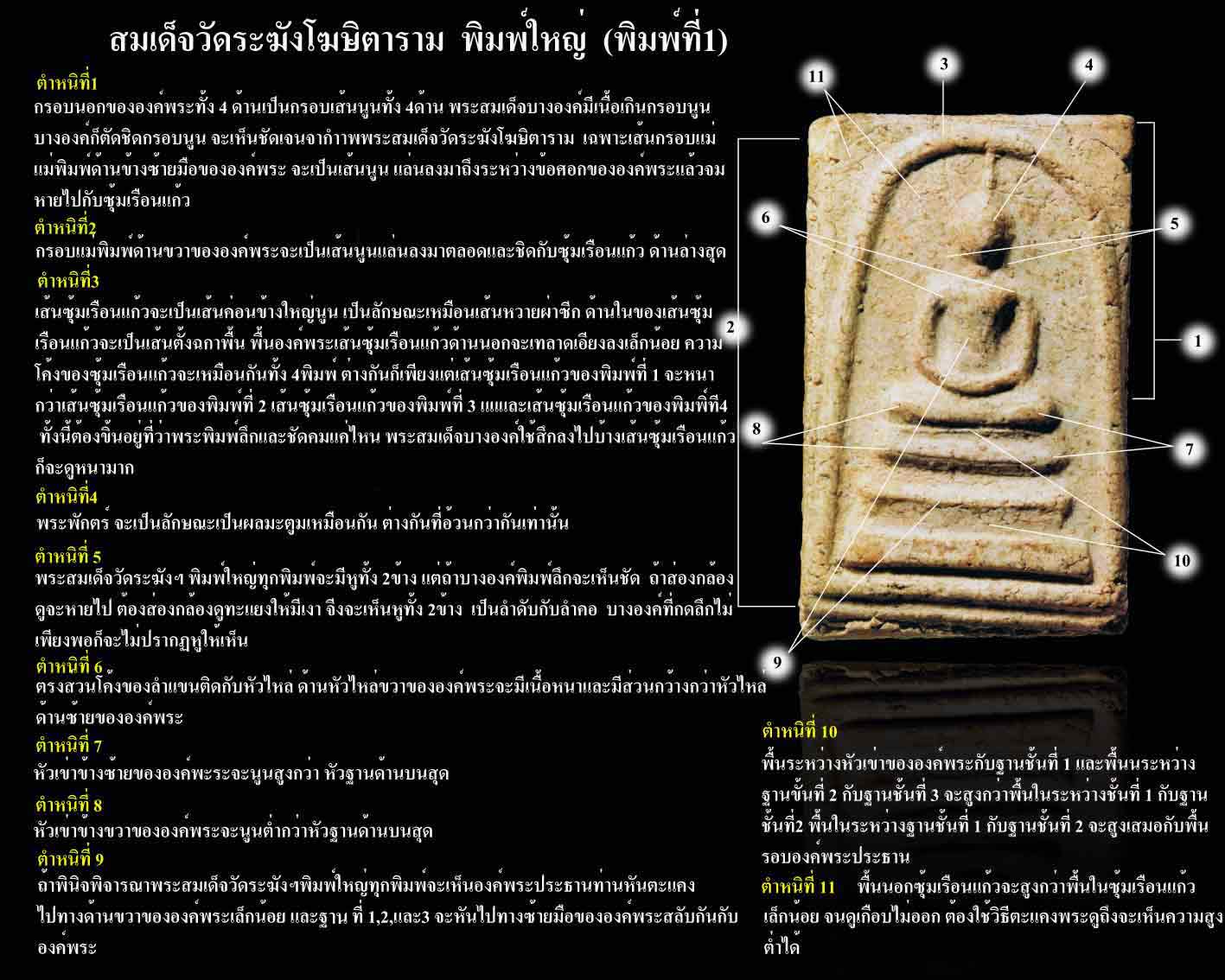 พระพิมพ์นี้เป็นเเม่พิมพ์ที่1ของพิมพ์มาตรฐาน ที่มีอยู่4พิมพ์ เป็นพิมพ์ของหลวงวิจาร เจียรนัย พิมพ์ทรงจะล่ำ ใหญ่กว่าทุกพิมพ์ ตำหนิทั้ง13ข้อมีครบหมด ววรณะเข้มเเบบมาตรฐานวัดระฆัง เนื้ออมเหลืองค่อนข้างละเอียดบวกเห็นมวลสารชัดเจนดูง่าย เป็นพระที่ผ่านการเเขวนบูชามาเเล้วผิวพระจึงเปิดออกหมด พระอยู่ในสภาพสมบูรณ์ 100เปอร์เซ็น ผู้มีบุญญา บารมี สนใจโทรสอบถามได้ ครับ เบอร์ 080-5585419 02-4377126 คุณพิสิษฐ์ พร้อมใบประกาศรับรองพระจากงานประกวด