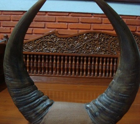 เขาควายเผือกคู่แท่นไม้สักแท้