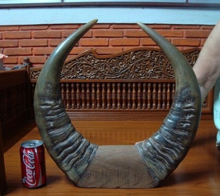 เขาควายเผือกคู่แท่นไม้สักแท้