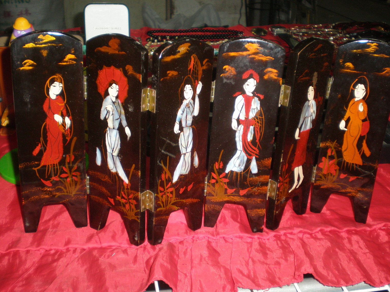 ฉากกั้นเล็ก เพ้นท์ 2 ด้าน อีกด้านประดับมุกรูปเครื่องแต่งกายสตรีชาวเวียดนาม เหมาะเป็นงานตั้งโชว์ หรือเป็นฉากกั้นสวยงามค่ะ