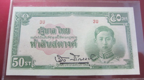 แบงค์50สตางค์รัชกาลที่8(พิมพ์ญี่ปุ่น) ลายเซ็นต์ เล้ง ศรีสมวงศ์ หายากมาก หมวดน้อย สวยมากไม่ผ่านการใช้งานมาเลย ปิดไม่แพง