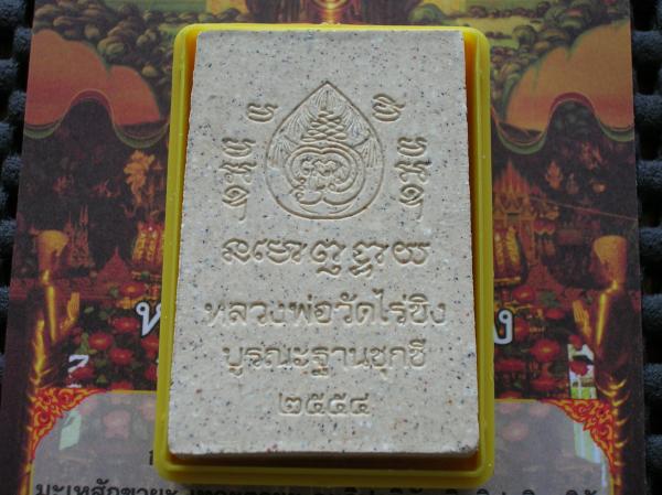 พระผงหลวงพ่อไร่ขิง รุ่นบูรณะฐานชุกชี ปีที่จัดสร้าง 2554 ด้านหน้าฝังเม็ดโค๊ดทองเหลือง มวลสารที่จัดสร้างมีส่วนผสมของซีเมนต์ฐานชุกชีผสมอยู่ในองค์พระ