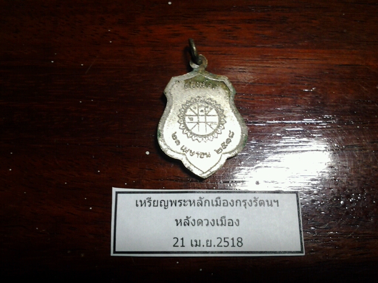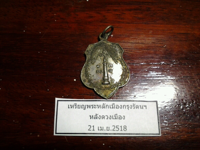 เหรียญพระหลักเมืองกรุงรัตนโกสินทร์ หลังดวงเมือง วันที่ 21 เม.ย. 2518