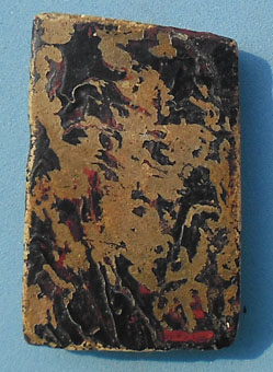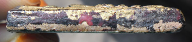 พระสมเด็จ พิมพ์ใหญ่ กรุเพดานโบสถ์ วัดระฆัง ปี 2408 หลังมีรอยปาด เป็นธรรมชาติ ลงชาดสีแดงและรักสีดำ หน้าหลัง แต่ปิดทองคำเปลว ด้านหน้าอย่างเดียว