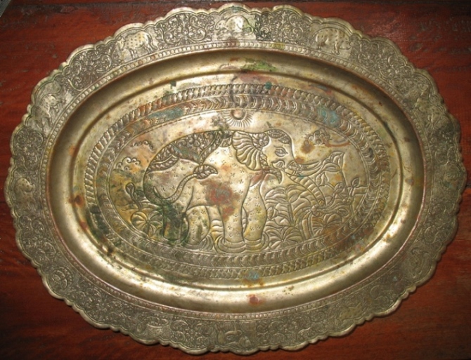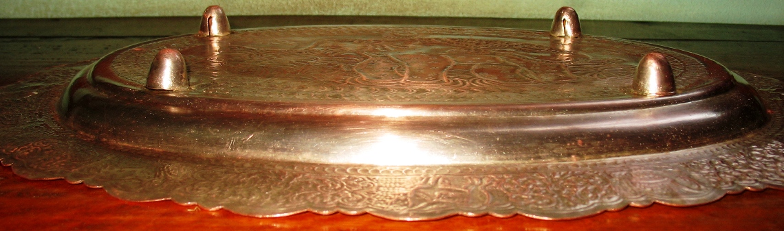 ถาดทองเหลืองชุบเงินยุคที่นิยมเงินนะครับ รุ่นเดียวกับขันเงินเขียวโบราณ