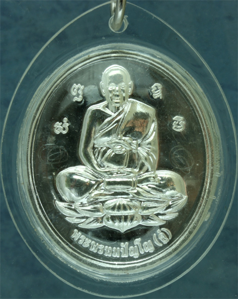 เหรียญเงิน หลวงปู่ดู่ ปลุกเสกโดยหลวงตาม้า วัดถ้ำเมืองนะ มีจาร ปี 2554