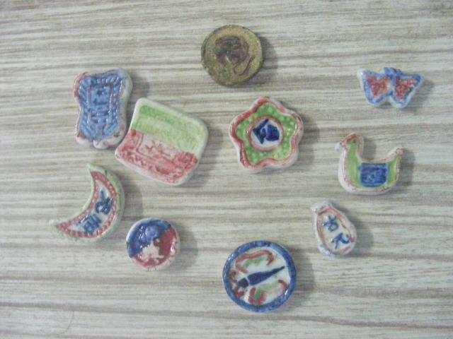 เบี้ยกระเบื้องเคลือบ (ปี๊) ใช้แทนเงินในบ่อนพนันสมัยก่อน มี 10 ชิ้น ยกชุด 800 บ. สนใจติดต่อ 0835472006