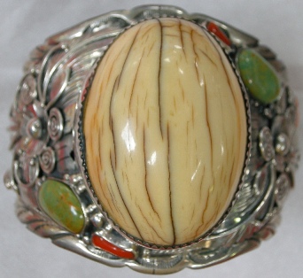 กำไรเงินฝังงาช้าง สวยมาก เป็นงานเงินทำขึ้นรูปเอง ขนาดเม็ดงาเส้นรอบวง 14 x 12 ซ.ม. ขนาดรอบตัวเรือนทั้งหมด 26 x 7 สนใจติดต่อขอดูรายละเอียดสินค้าก่อนได้