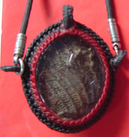 เบี้ยแก้ เชือกถัก รุ่นเก่า สร้างประมาณปี 24xx ก่วาๆ ขนาดใหญ่ มีน้ำหนัก ไม่ทราบที่ สวย แท้ เก่าจนเชือกเป็นขุยและสีซีดแล้ว พร้อมเลี่ยมพลาสติก ถักเชือก 3 หูแบบ 2 สีอย่างสวย และสร้อย 3 ห่วง ถ้าไม่ดีจริง คงไม่มีใครทำแบบนี้ เพราะค่าเลี่ยมพลาสติก, ถักเชือก,