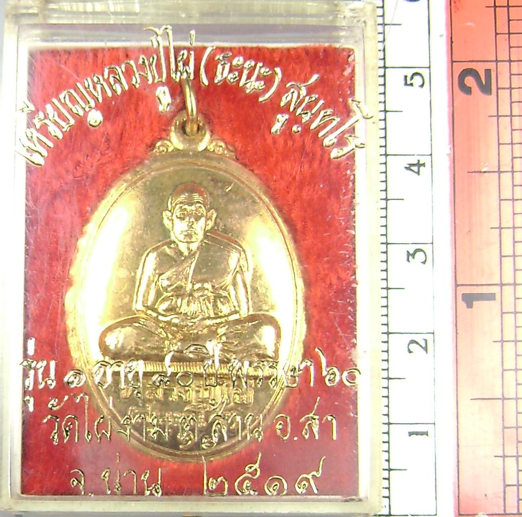 เหรียญหลวงปู่ไผ่ (ธะนะ) สุนทโร วัดไผ่งาม ต.ส้าน อ.สา จ.น่าน รุ่นแรก 2519 กะไหล่ทองเต็ม 1ใน 250 เหรียญ มีจารซ้าย-ขวา มีโค๊ต กล่องเดิม ครบสูตร เหรียญสวยมากๆ (จมูกโด่งๆ) สวยๆแบบนี้หายากสุดๆ พระไม่ผ่านการใช้ ประสบการณ์มากมาย