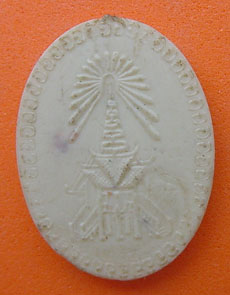 เหรียญรูปไข่ พลาสติก สีขาว หลังตราสัญลักษณ์ ลพ.โอภาสี อาศรมบางมด ปี 2510 แท้ สวย