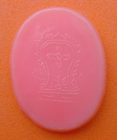 เหรียญรูปไข่ พลาสติก สีชมพู หลังตราเสมา ลพ.โอภาสี อาศรมบางมด ปี 2515แท้ สวย พุทธคุณเน้นทางด้านแคล้วคลาด อยู่ยงคงกะพันชาตรี