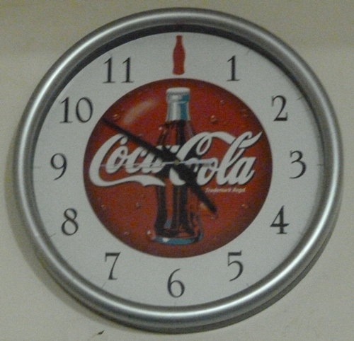 นาฬิกาโค้กแขวนผนัง อย่างใหญ่ เส้นผ่าศูนย์กลาง 14.5" สวยเดิม ใช้ถ่าน AA 1 ก้อน