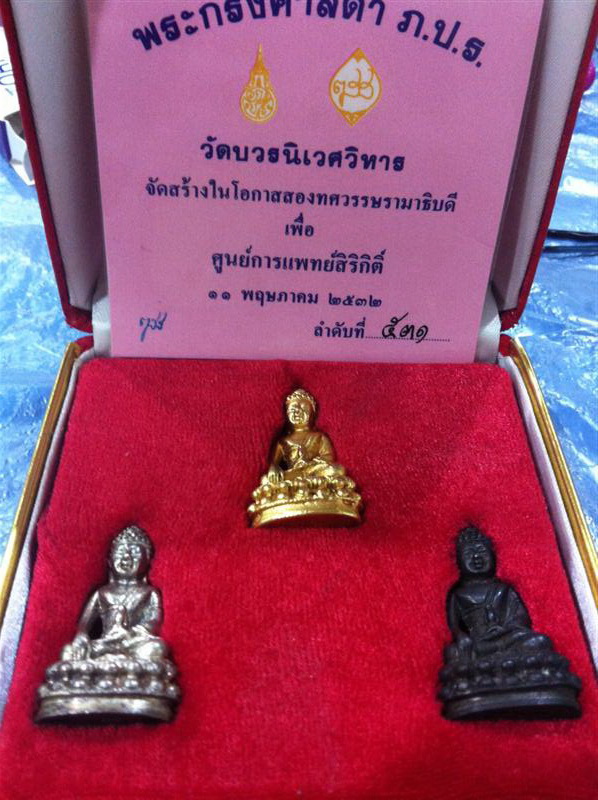 พระกริ่งศาสดา 3องค์ ทองคำ เงิน นวะโลหะ อยู่ในกล่อง กำมะหยี่ อุปกรณ์ครบ