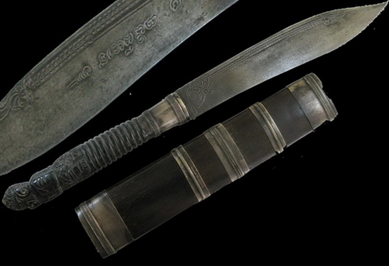 มีดเก่า สายนครสวรรค์ ด้ามแกะเขา ยาว 13 นิ้ว