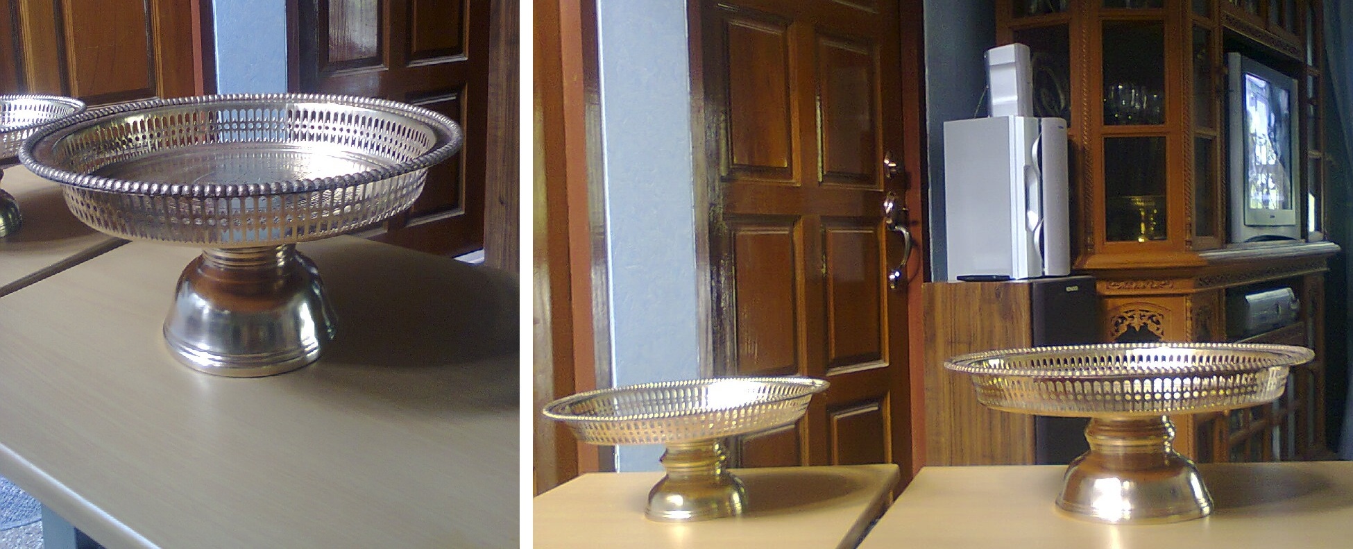 โตกทองเหลืองเก่า ตอกลายช้าง