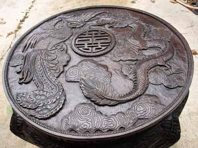 ชุด โต๊ะ ไม้จีน ไม้ กลม แกะสลัก ลายมังกร และ หงส์