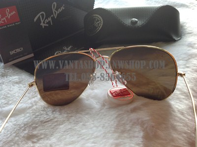 แว่นกันแดด ราย ละเอียดสินค้า : สินค้ารหัส VIP_007 RayBan Aviator RB3025 กรอบทองเลนส์ปรอททอง (รุ่นนี้ขายดีมากๆครับ) RayBan รุ่นนี้คงไม่ต้องอธิบายอะไรกันมากนะครับ ทุกคนรู้จักดีใน ชื่อ ตี๋ใหญ่ เป็นแว่นที่ทุกบ้านต้องมีติดไว้ครับ (ใส่ได้ทั้งหญิงและชาย) รายละเอียดสินค้า รูปแบบกรอบ : กรอบเต็ม สีเลนส์ : กระจกสีปรอททอง วัสดุทำกรอบแว่นตา : โลหะ วัสดุทำขาแว่นตา : โลหะ อุปกรณ์อื่น : กล่องกระดาษRayBan(สีเทา) + ซองหนังRayBan + ผ้าเช็ดแว่นRayBan + Bookการใช้งาน spec กรอบแว่นตา (มม.) Bridge : 14 (ช่วงกลางระหว่างเลนส์ทั้งสองข้าง) Eye : 58 (ความกว้างของกระจกข้างใดข้างหนึ่ง) Vertical : 50 (ความสูงของกรอบ) Temple : 135 (ความยาวขา)