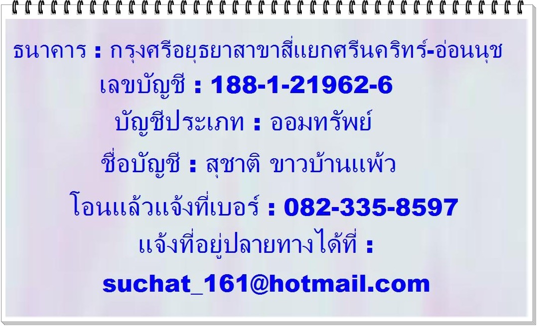 | ติดต่อ: | สุชาติ ขาวบ้านแพ้ว