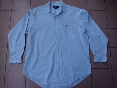 ขายเสื้อเชิ้ต Polo Ralph Laurenสีฟ้าออกขาว size XL สภาพดี ราคาถูก