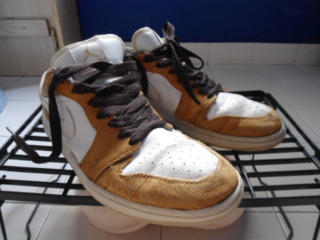 ขาย ไนกี้ แอร์จอร์แดน 1 Air Jordan I หนังลายหนังช้าง สีแกงกะหรี่ และ ขาว เบอร์ 9 USA สภาพใช้งาน ขุดเจอของเก่าตอนเก็บบ้านครับ ขาย 1200 บาท ลด 300 บาท