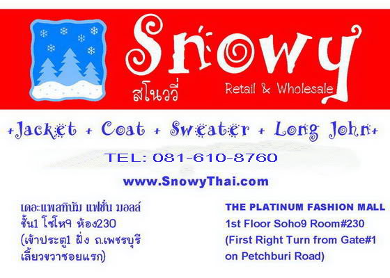 หรือแวะชมสินค้า ได้ที่หน้าเว๊ปของทางร้านได้เลยครับ ไปเที่ยวคราวนี้ คุณจะพบแต่ความอบอุ่น และเที่ยวได้อย่างสนุกสนานสบายใจ มาพบเราซิคะ SNOWY