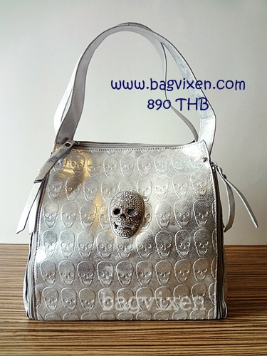 ซื่อสัตย์ - จริงใจ - จัดส่งจริงทุกใบ รีบติดต่อเข้ามานะคะ สินค้ามีจำนวนจำกัดค่ะ (^__^) รายละเอียดสินค้า รหัสสินค้า : L000002 ยี่ห้อ : Lulu House สี : เงิน วัสดุ : หนัง PU, พลอยเทียม ขนาด : สูง 27 ซม. x ยาว 29 ซม. x ฐานกว้าง 16 ซม. ประเภท : กระเป๋าสะพายข้าง ราคา : 890.00 บาท คำบรรยาย ไม่ว่าจะเป็นสาวร็อค สาวพังค์ สาวเก๋ หรือสาวเท่ หากคุณหลงใหลลายหัวกะโหลกแล้ว กระเป๋าใบนี้ไม่ควรพลาดค่ะ (^^) กระเป๋าแฟชั่น Lulu House สีเงิน พร้อมส่ง พื้นลายหัวกะโหลกปั๊มนูน ตรงกลางตกแต่งด้วยหัวกะโหลกขนาดใหญ่ประดับพลอยเทียม (rhinestone) ตัวกระเป๋ามีน้ำหนักเบา ช่องใส่ของด้านในบุด้วยผ้าพิมพ์ลายหัวกะโหลกสีขาว-ดำ และมาพร้อมกับสายสะพายสีเงินเข้ากัน bagvixen รับประกันความ chic จ้า ภาพประกอบสินค้า ภาพกระเป๋าถ่ายจากสินค้าจริง โดยร้าน bagvixen มั่นใจได้สินค้าเหมือนแบบ 100% ค่ะ ดูภาพประกอบเพิ่มเติม ในเว็บไซต์ร้าน bagvixen ในกรอบด้านบนขวามือได้เลยค่ะ (^^) วิธีการสั่งซื้อสินค้า แจ้งรหัสสินค้า, ชื่อ-สกุล, ที่อยู่ในการจัดส่ง และวิธีจัดส่ง (เลือกลงทะเบียน หรือ EMS) มาที่อีเมล [email protected] หรือโทร 08-4720-9010 (นุ่น) ค่าจัดส่งสินค้า แบบลงทะเบียน ค่าจัดส่ง 60 บาท, แบบ EMS ค่าจัดส่ง 80 บาท