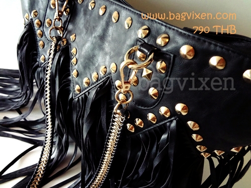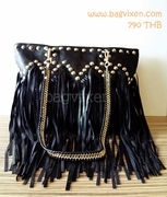 ** สินค้าขาดสต็อก ขออภัยค่ะ ** กระเป๋าแฟชั่น Vivian หนัง PU สีดำ ประดับพู่ สไตล์โบฮีเมียน พร้อมส่ง ภาพถ่ายจากสินค้าจริง WOW!! กระเป๋าแฟชั่น หนัง PU ดีไซน์สวย พร้อมส่ง จากแบรนด์ AXIXI, Lulu House, Vivian