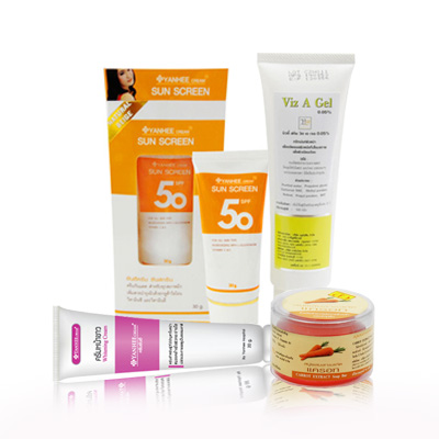 เข้าชมสินค้ามากมาย/สั่งซื้อสินค้า : http://www.beautyconner.com สอบถามสินค้า/สั่งซื้อสินค้า : Tel.087-9503168 ติดต่อเอ YANHEE WHITE PERFECT SET ยันฮี ไวท์ เพอร์เฟ็ค เซ็ต ผ่านการตรวจสอบ : ผ่าน อย.(ประเทศไทย) ที่มาของผลิตภัณฑ์ : ภายในประเทศ (ประเทศไทย) อายุที่เหมาะกับผลิตภัณฑ์ : อายุ 16 ปี ขึ้นไป เพศที่เหมาะกับผลิตภัณฑ์ : เพศชาย/หญิง ผลิตภัณฑ์ในเซ็ตประกอบด้วย 1.Yanhee Carrot Root Extract Soap Bar 75 g. 2.Yanhee Cream Sun Screen SPF50 PA++ 30 g. 3.Yanhee Whitening Cream 20 g. 4.Yanhee Viz A Gel 100 Ml. ขอแนะนำชุดหน้าขาวใส รพ.ยันฮี รวบรวมผลิตภัณฑ์เพื่อช่วยให้ผิวหน้าของคุณขาวกระจ่างใสขึ้น เนียนละเอียดขึ้น เน้นความขาวตั้งแต่ขั้นตอนการทำความสะอาดผิว บำรุงผิว พร้อมปกป้องผิว คุณมั่นใจได้ว่า ปัญหาผิวที่คุณไม่ต้องการ เช่นปัญหาผิวหน้าหมองคล้ำ มันดำ เต็มด้วยรอยสิว ฝ้า กระ ที่ทำให้ผิวหน้าคุณดูไม่ชาวสดใส ชวนมอง แต่ด้วยขั้นตอนการดูแลผิวหน้าของเซ็ตหน้าขาวนี้ จะช่วยให้ผิวหน้าคุณขาวผุดผ่อง แลดูเนียนใส สีผิวขาวเสมอกัน ด้วยการผลิตที่สะอาดและปลอดภัย ผ่านการตรวจสอบแล้วว่าปลอดภัยต่อผิวหน้า สามารถใช้ได้ทุกสภาพผิว แม้ผิวที่แพ้ง่าย ไม่มีสารเร่งความขาว สารปรอท ไฮโดรควิโนหรือสารที่ไวต่อแสงแดด ซึ่งอาจจะทำลายผิวหน้าคุณได้ ใน 1 ชุดประกอบด้วยผลิตภัณฑ์ถึง 4 ชิ้น แต่ราคาแสนประหยัด คุ้มอย่างนี้ คุณสามารถมอบรางวัลให้กับผิวคุณด้วยความขาว กระจ่างใสได้ คุณสมบัติของผลิตภัณฑ์ - Yanhee Carrot Root Extract Soap Bar( ทำความสะอาดผิวได้หมดจน ลดสิว ฝ้า กระ ) - Yanhee Cream Sun Screen SPF50 PA++( ปกป้องแสงแดด บำรุงผิวขาวใส ) - Yanhee Whitening Cream( บำรุงผิว ปรับผิวหน้าขาวใส ลดรอยสิว ฝ้า กระ ) - Yanhee Viz A Gel( ผลัดเซลล์ผิว ลดความหมองคล้ำ จุดด่างดำ สิว ฝ้า กระ สิวอุดตัน ) ผลที่ได้รับหลังใช้ - ผิวหน้าขาวกระจ่างใสขึ้น - รูขุมขนกระชับ ผิวหน้าจึงแลดูเนียนละเอียด - จุดด่างดำ รอยสิว ฝ้า กระ จางลง - สิวอุดตันลดลง - สีผิวขาว เนียนเสมอกัน