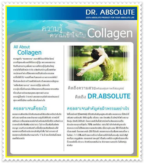 และรวดเร็วนำไปสร้างคอลลาเจนได้ทันที เป็นอาหารเสริมสุขภาพ มีแต่ประโยชน์ ไม่มีอันตรายไม่มีผลข้างเคียง เมื่อผู้บริโภครับประทาน . 100% ABSOLUTE COLLAGEN ทุกวันอย่างต่อเนื่องส่งผลให้ ผิวสุขภาพดี เปล่งปลั่ง กระจ่างใสอมชมพู ทั่วเรือนร่าง สุขภาพดี