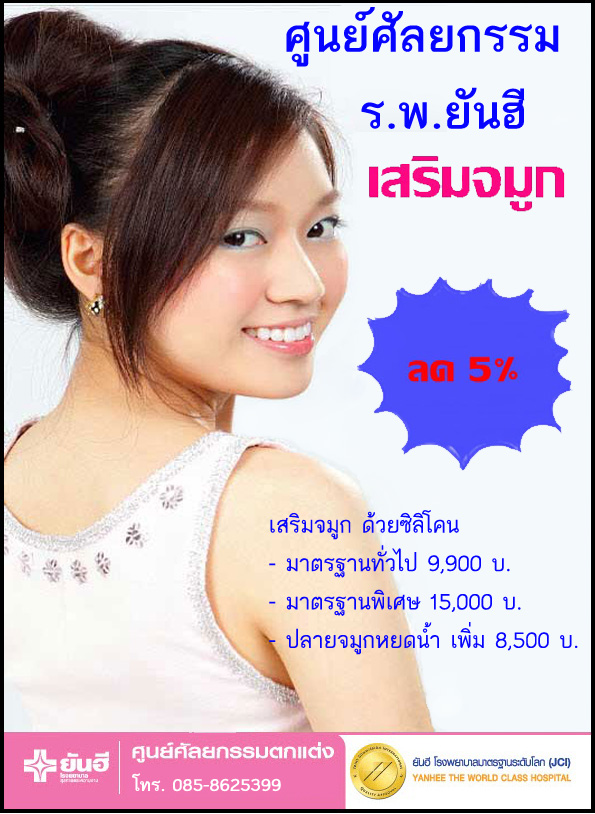 ** กรุณาติดต่อลงทะเบียนล่วงหน้า เพื่อขอรับส่วนลดในการทำศัลยกรรม & รักษาโรคทั่วไป ได้ที่เบอร์ 085-8625399 - ส่วนลดนี้ใช้เป็นส่วนลดในการทำศัลยกรรมได้ทุกชนิด และยังสามารถลดค่ารักษาโรคทั่วไป ทุกรายการการรักษา - ทางเรามีบริการทำประวัติผู้ป่วยล่วงหน้า, จองคิวแพทย์, แจกส่วนลด และให้บริการสอบถามข้อมูลค่ะ สนใจรับข่าวสารโปรโมชั่นประจำเดือน ให้ส่ง e-mail มาที่ [email protected] ชื่อเรื่อง : ขอรับข่าวสารโปรโมชั่นประจำเดือน ร.พ.ยันฮี (market) ==============================================================