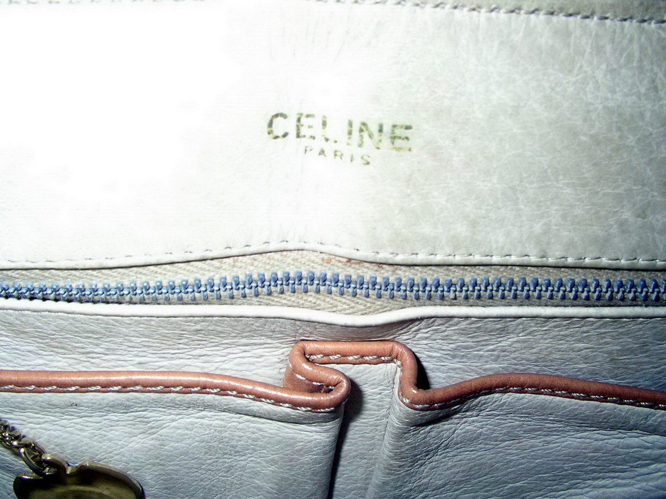 CELINE กระเป๋าสะพาย ทรง Messenger หนังแท้สีครีมตัดขอบสีน้ำตาล