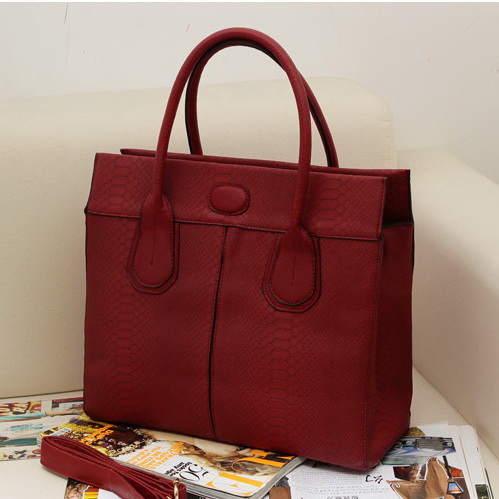 กระเป๋าถือสีแดงลายหนังจรเข้ ทรงเหลี่ยมใบใหญ่ พร้อมสายสะพายยาว สวยมากค่ะ