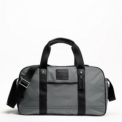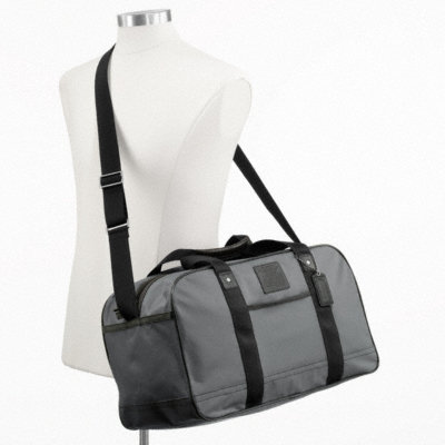 กระเป๋าผู้ชายสะพาย COACH F70504 ขนาดใหญ่ สีเทา สำหรับใส่สัมภาระไปเข้ายิม เพิ่อเสริมกล้าม หรือจะใช้เป็นกระเป๋าใส่เสื้อผ้าสำหรับเดินทางก็ไม่ผิดแต่อย่างไร เป็นกระเป๋าผ้าไนลอนเย็บขอบด้วยหนังอย่างดี สายปรับได้สามารถสะพายไหล่ หรือจะสะพายข้างก็เท่ห์ หรือไม่อยากสะพายก็มีหูไว้ให้หิ้วได้อีกด้วย