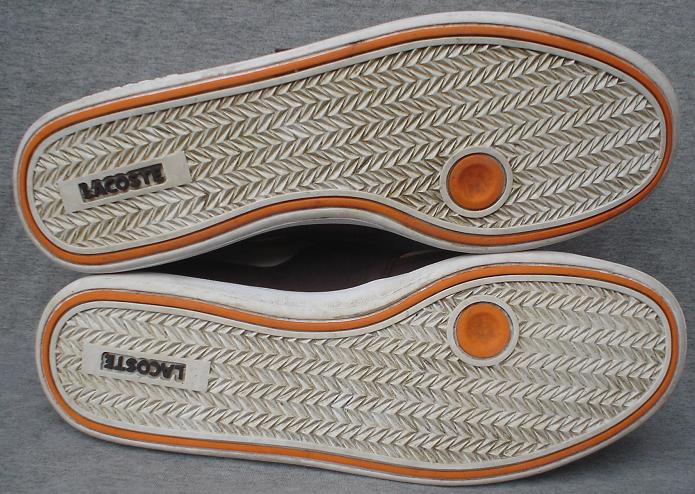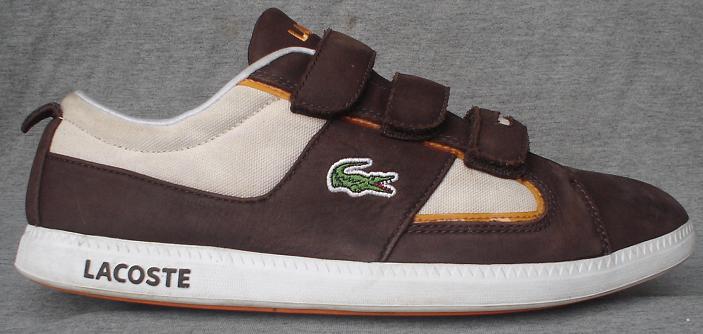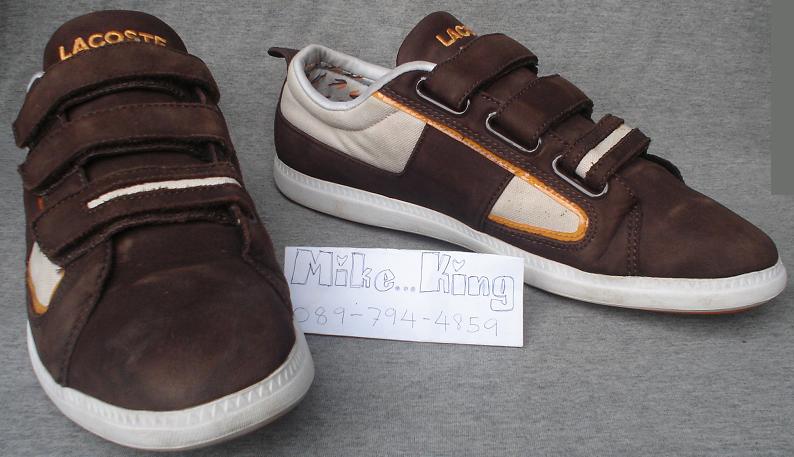 LACOSTE หนังผสมผ้าน้ำตาลสายแปะ 3 เส้นเบอร์ 42