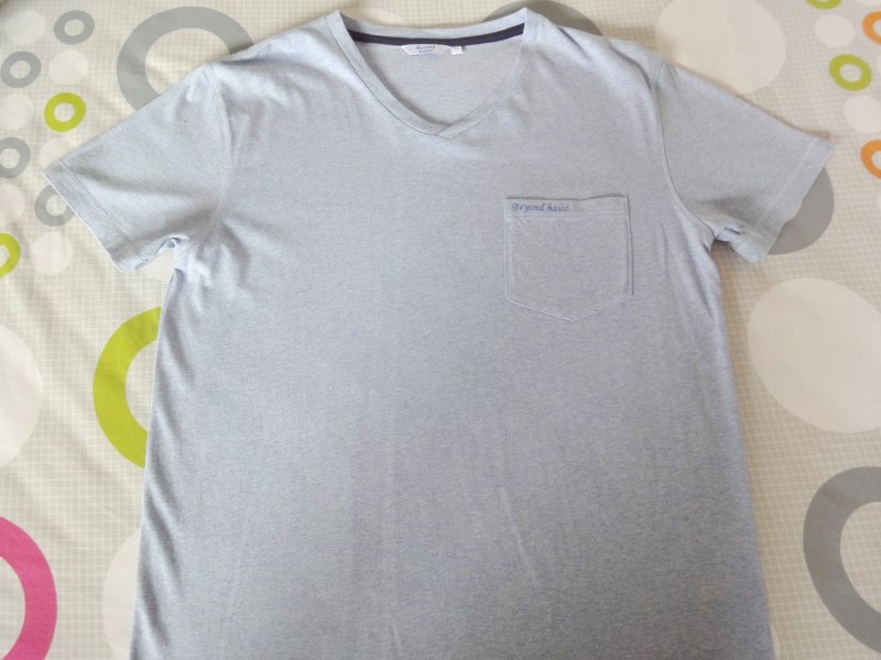 เสื้อยึด คอวี ของแท้ซื้อจาก Shop ยี่ห้อ Beyond Basic สีฟ้า -อ่อน เนื้อผ้า COTTON แท้ 100% ครับ